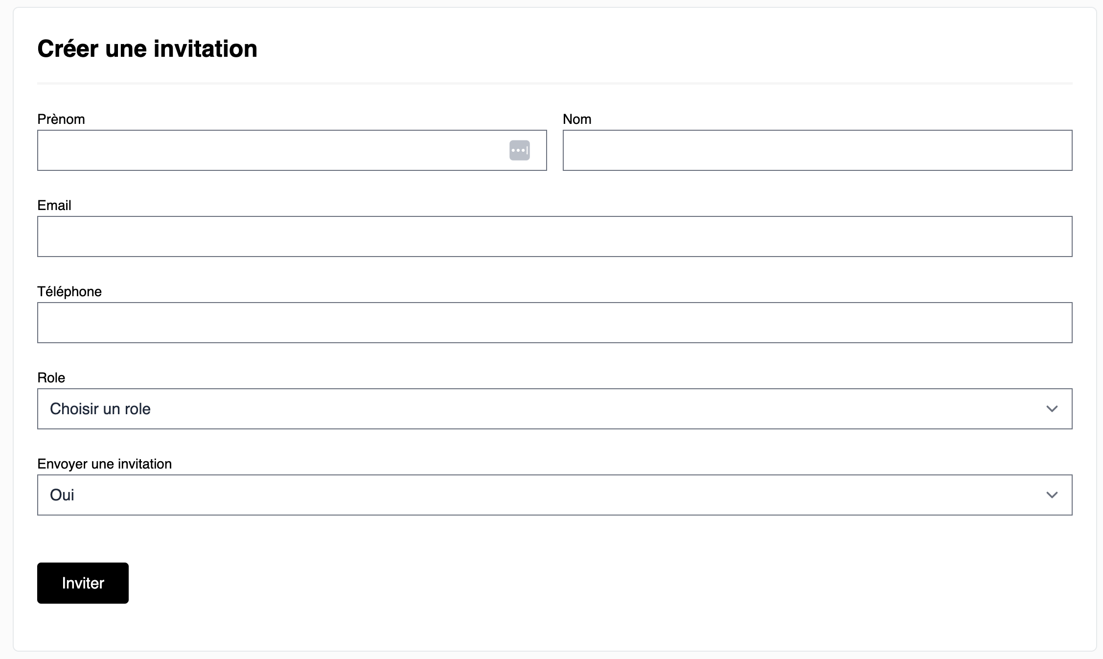 Indiquez son adresse e-mail personnelle (obligatoire pour l'envoi de l'invitation).