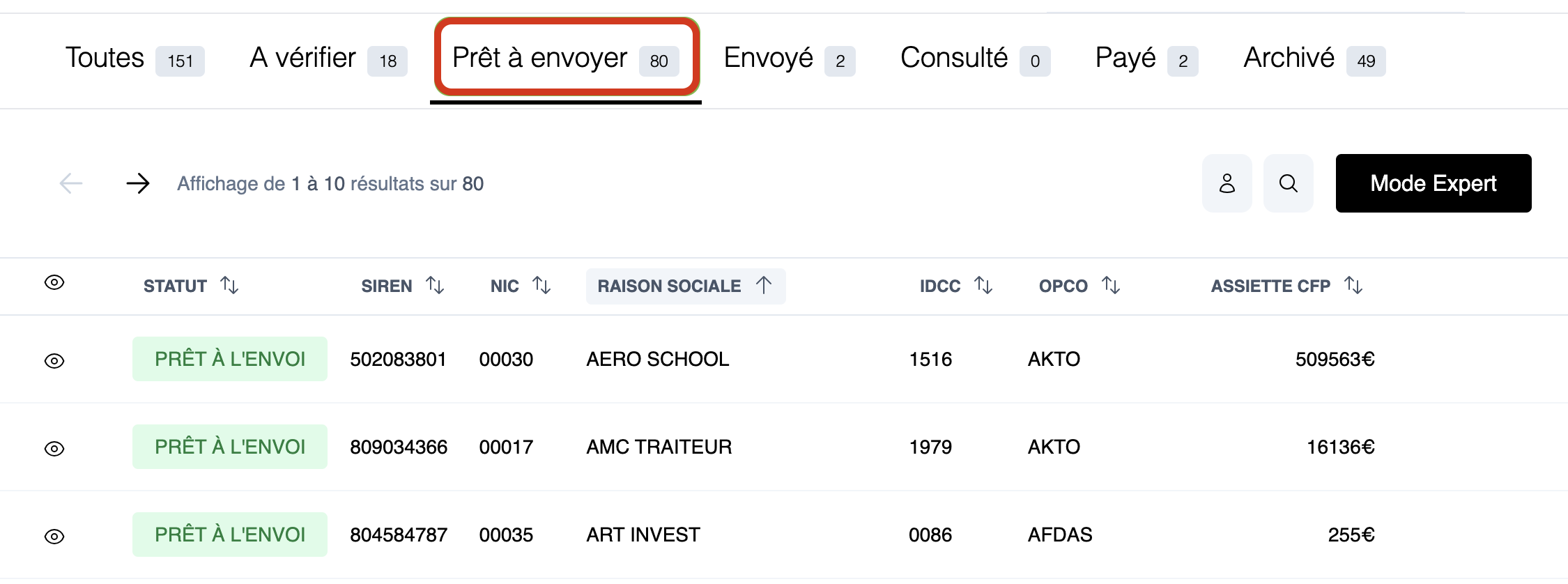 Pour envoyer une déclaration à votre client, il est nécessaire qu’elle se trouve en statut Prêt à envoyer”, une fois que c’est le cas, ouvrez le bordereau concerné.