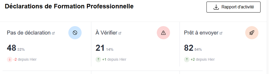 Pour vérifier les taux des organismes., vous pouvez vous rendre dans le Tableau de bord, puis dans les déclarations “À vérifier”.