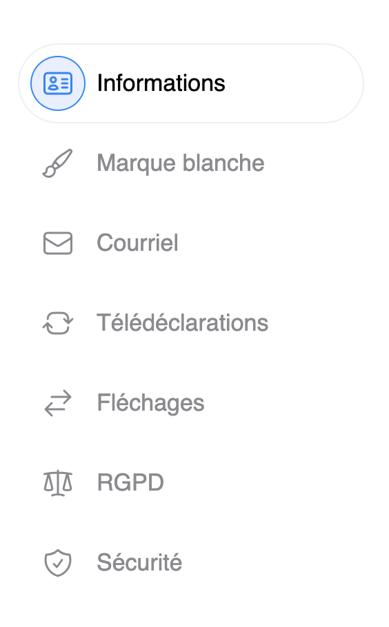 Si vous souhaitez modifier les informations de votre cabinet, vous pouvez vous rendre dans Paramètres du compte.